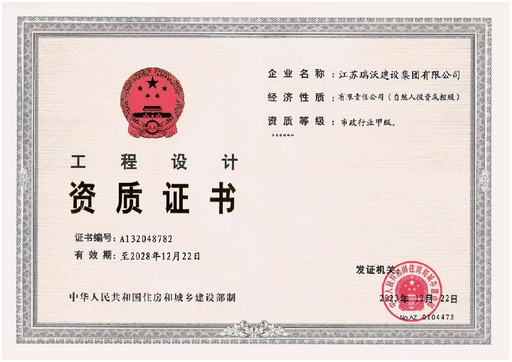 江蘇瑞沃建設(shè)集團有限公司成立于2007年,是一家以市政、交通工程建設(shè)為主導(dǎo),集房屋建筑、交通安全設(shè)施、城市道路照明工程、電力工程、隧道工程、航道工程及投融資為一體的綜合性企業(yè)。企業(yè)注冊資本60000萬元,現(xiàn)有各類技術(shù)人員580人,其中中、高級以上人員498人,注冊類人員268人,一、二級建造師166人。公司榮獲“江蘇省建筑業(yè)優(yōu)秀企業(yè)”、“江蘇省五一勞動獎狀”,連續(xù)多年被評為“揚州市先進企業(yè)”、“江蘇省建筑業(yè)百強企業(yè)”,連續(xù)八年蟬聯(lián)百強企業(yè)基礎(chǔ)設(shè)施類第一名。